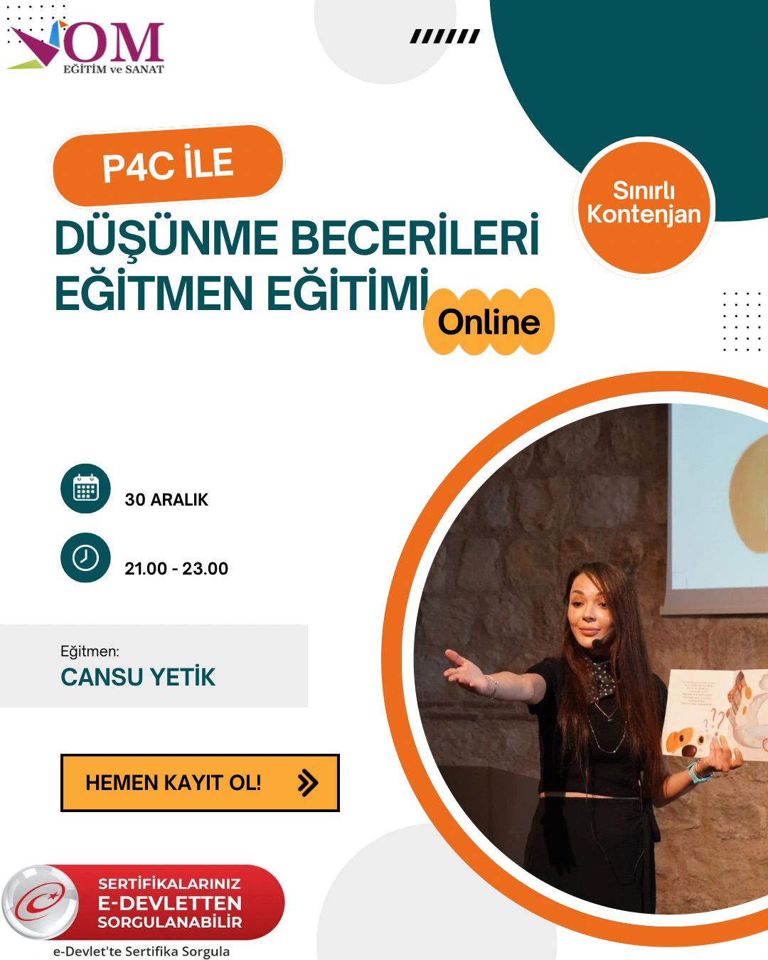 Bu iki saatlik eğitimde P4C (Philosophy for Children) yaklaşımıyla çocukların düşünme, sorgulama ve okuduğunu anlama becerilerini geliştirmeye yönelik uygulamaları öğreneceksiniz.